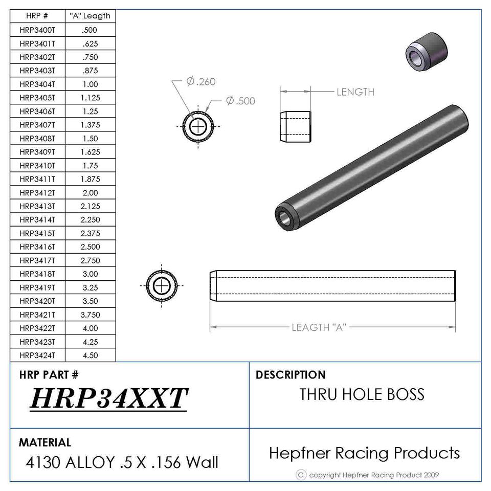 Boss 1/2" Long 1/4 ID Thru, Material 0.50 OD x 0.120, 4130