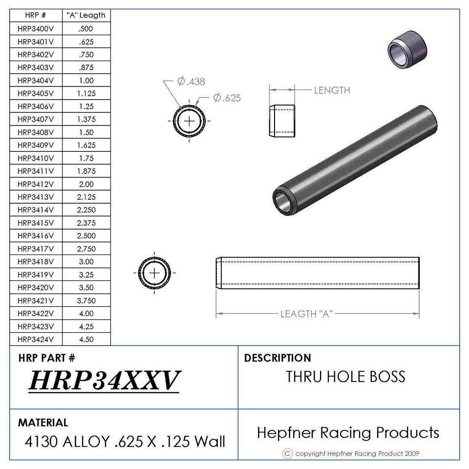 Material: .625 OD x .095 4130