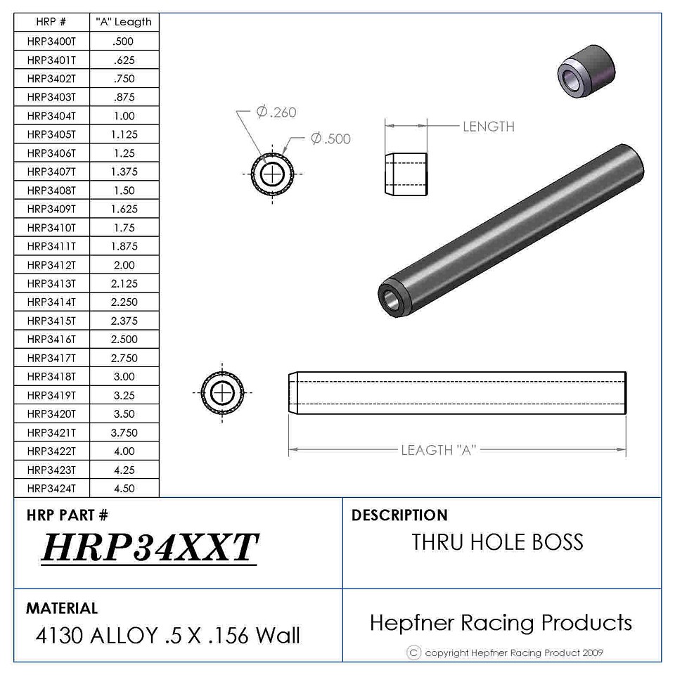 Material: .50 OD x .120 4130