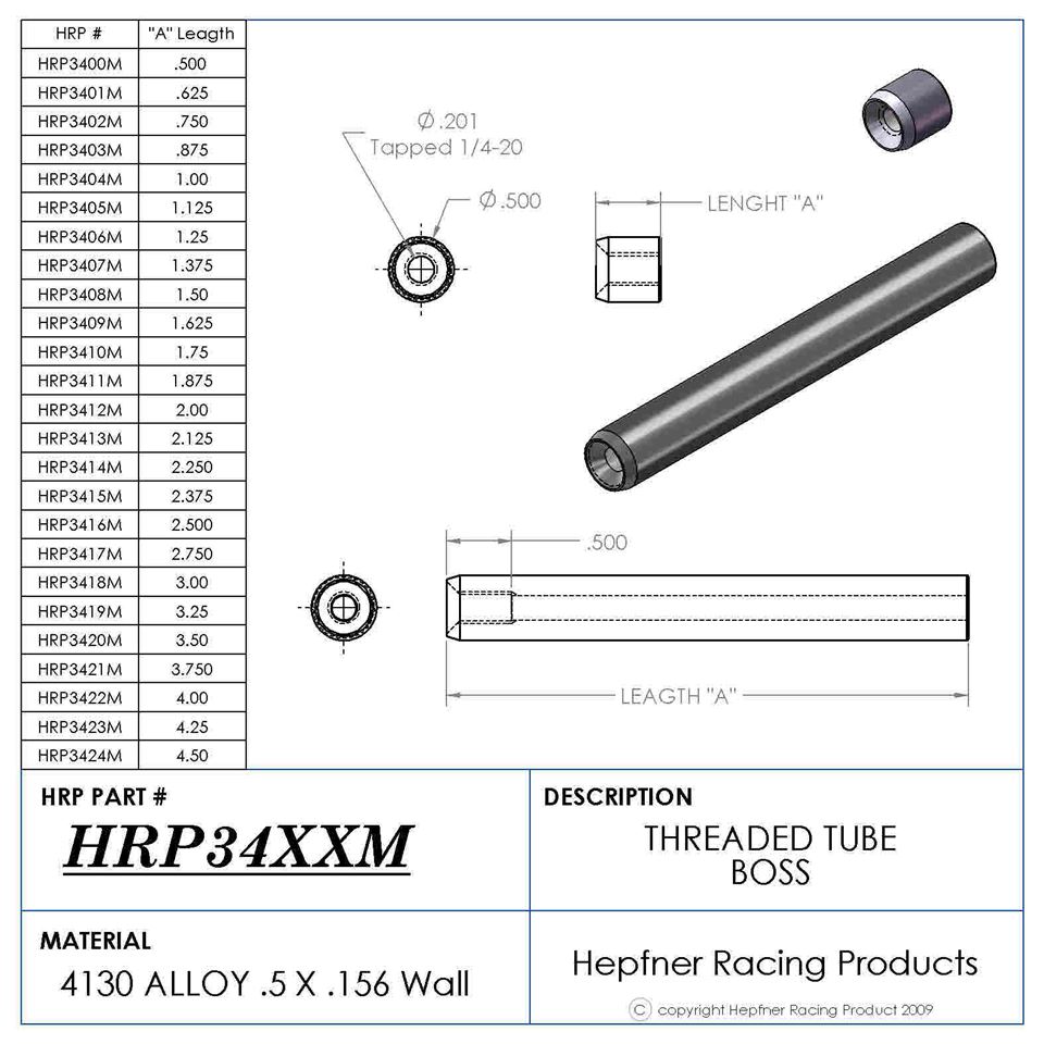 Boss 3 1/2” Long 1/4 X 20 Threaded