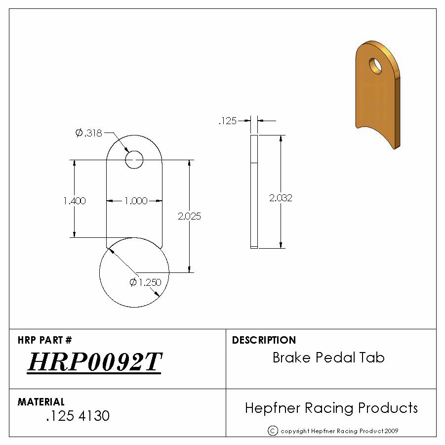 Brake Pedal Tab5/16" (.318) Dia Hole1 1/4" (1.250) Cope