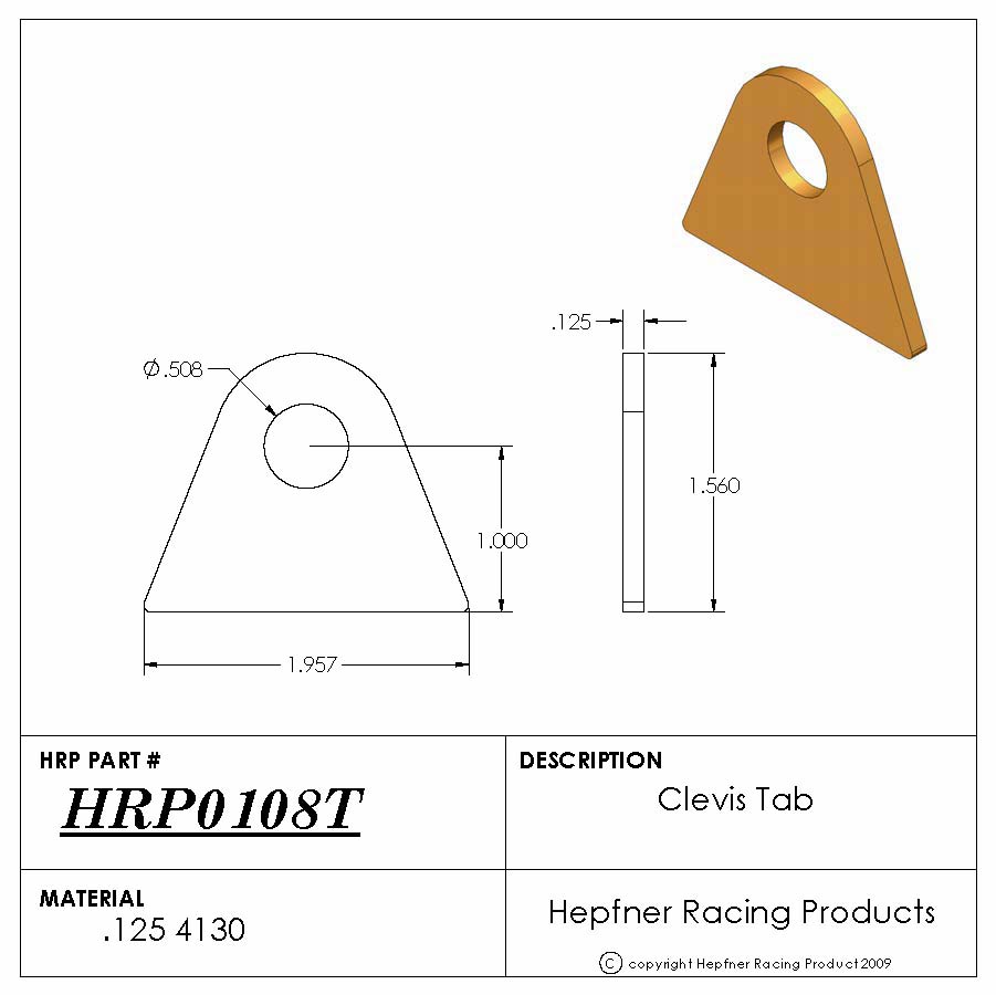 Clevis Tab1/2" (.508) Dia Hole1 61/64" (1.957) Flat Bottom
