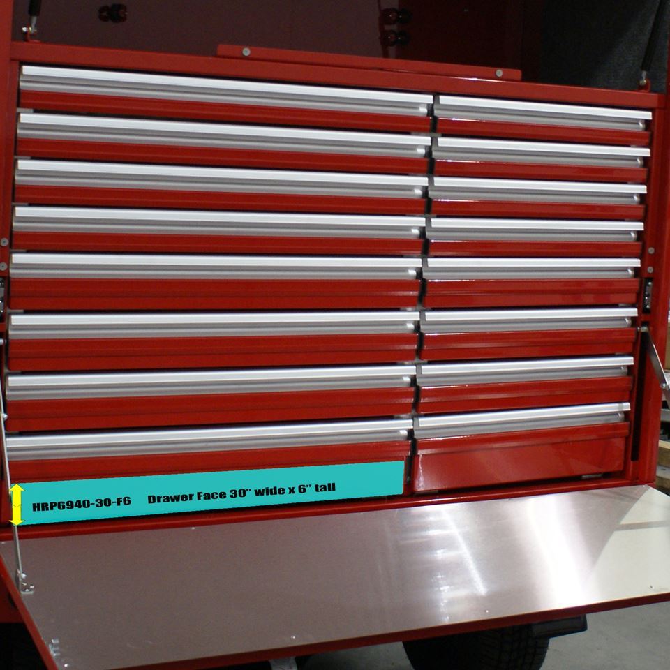 MULE Tool Box replacement Drawer FaceFits 30" x 6" Tall DrawerThe highlighted part on the photo is represents this pieceWorks in conjunction with HRP6940-20-H which is the drawer handle, which is sold separately. So be sure to order as well!