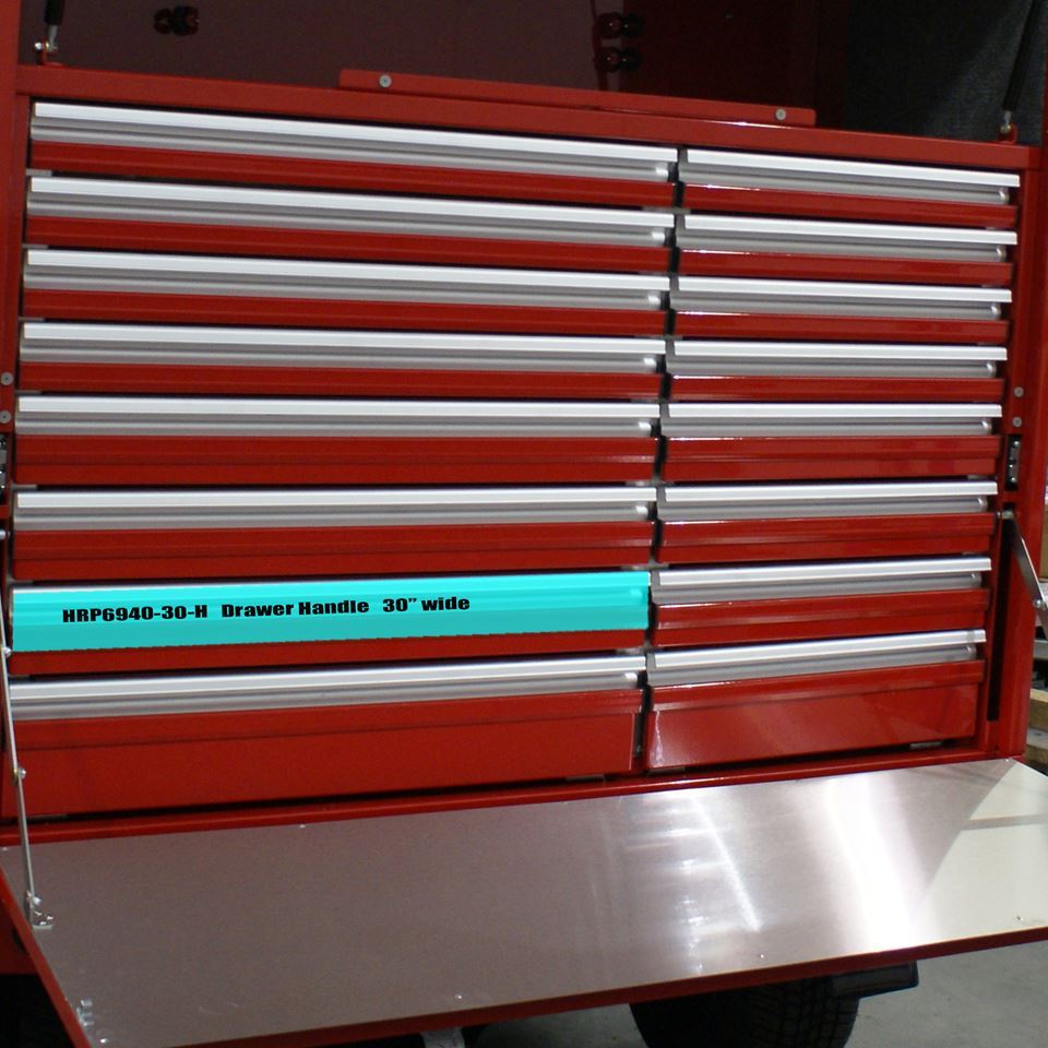 MULE Tool Box replacement Drawer HandleFits 30" wide drawer stack (all levels/heights)The highlighted part on the photo is represents this pieceWorks in conjunction with HRP6940-30-F4 or HRP6940-30-F6 which is the drawer face, which is sold separately. So be sure to order cooresponding faceplate as well.