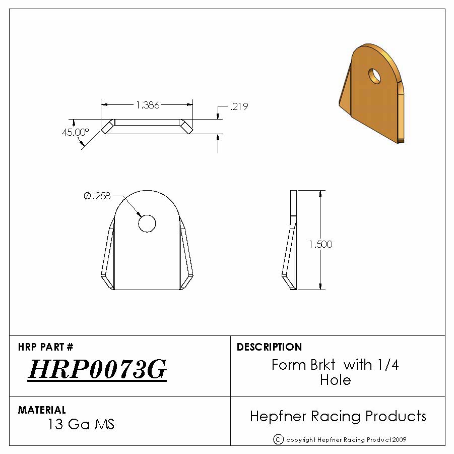 Formed BracketRound Top-Slight Bend for Extra Strength-Used for Body Tabs1 1/2" (1.500) Tall1/4" (.258) Dia Hole