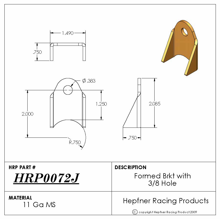 Formed Bracket2 3/32" (2.085) Tall3/8" (.383) Dia Hole3/4" (.750) Radial Cope