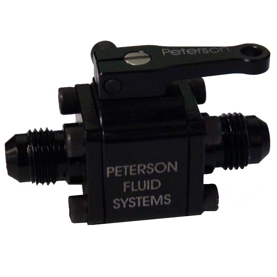 -6 AN FUEL SHUT OFFThe best shutoff valve in the racing industry. Produced from aircraft quality aluminum, this valve utilizes a hardcoated aluminum ball and body along with Teflon seals. This valves make fuel and oil shut off easy.
