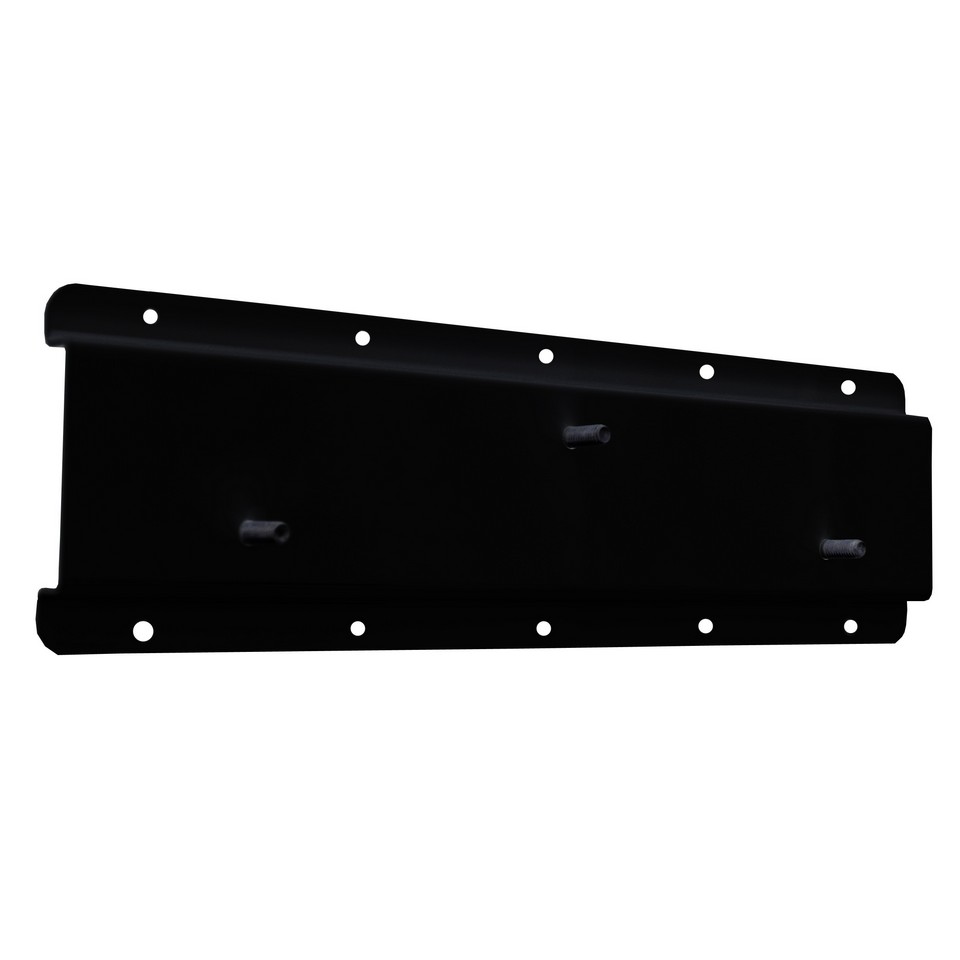 Flat bracket keeps headers safe and secure against trailer or shop wall.