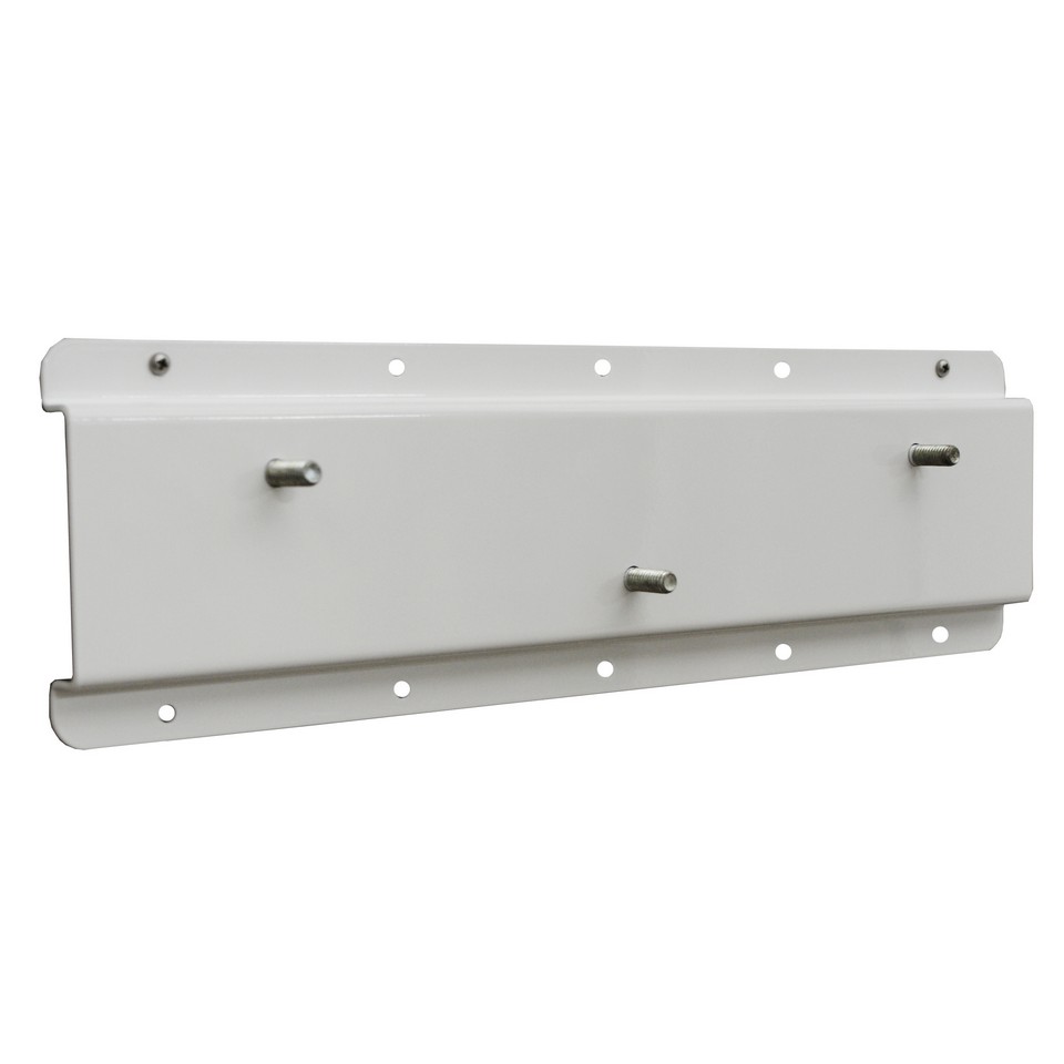 Flat bracket keeps headers safe and secure against trailer or shop wall.