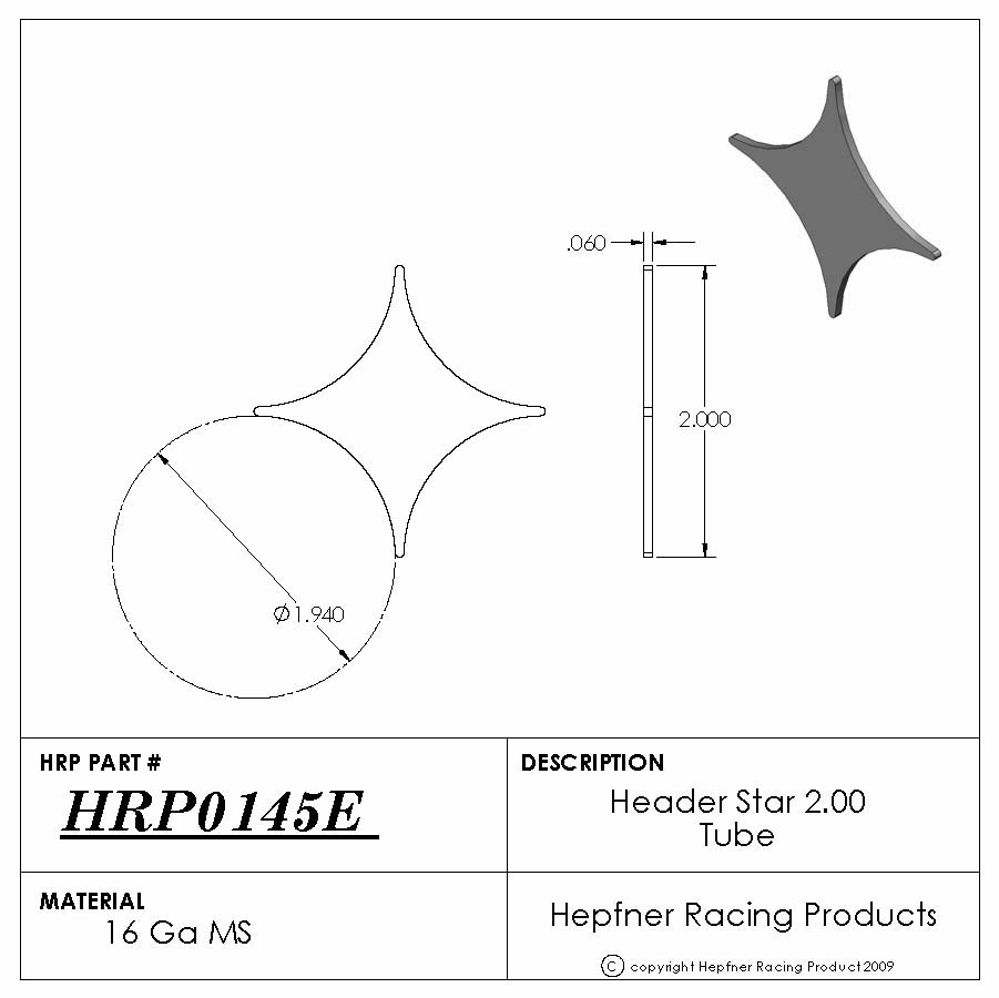 Header Star Fits 2" (2.00) Tube1 15/16" (1.940) CopeMaterial: 16 GA MS