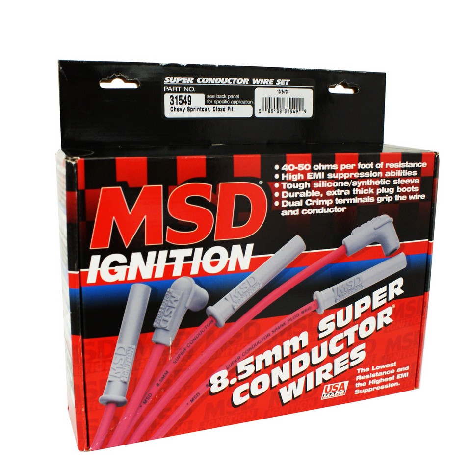 The MSD 8.5mm Super Conductor Spark Plug Wires are the only wires recommended for use with the Pro Mag. The wires feature a copper alloy conductor that is tightly wrapped around a special center core to create a highly effective EMI choke. With this design, the wire has less than 50 ohms resistance per foot, but does not interfere with any other electronics!