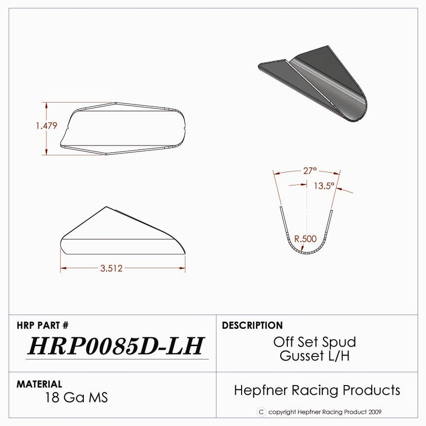 Offset Spud Gusset, MS, 0.048" Thick, LH