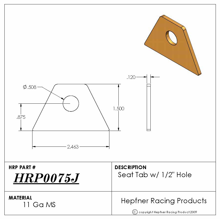 Seat Tab15/32" (2.463) Flat Bottom1/2" (.508) Dia Hole
