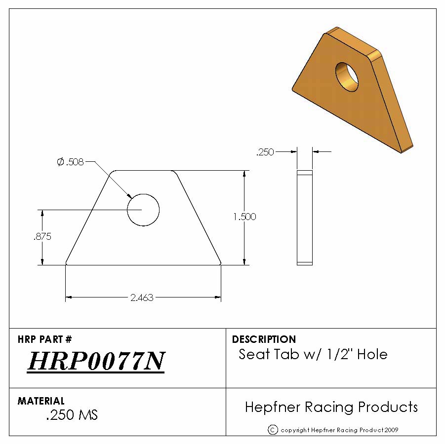 Seat Tab15/32" (2.463) Flat Bottom1/2" (.508) Dia Hole