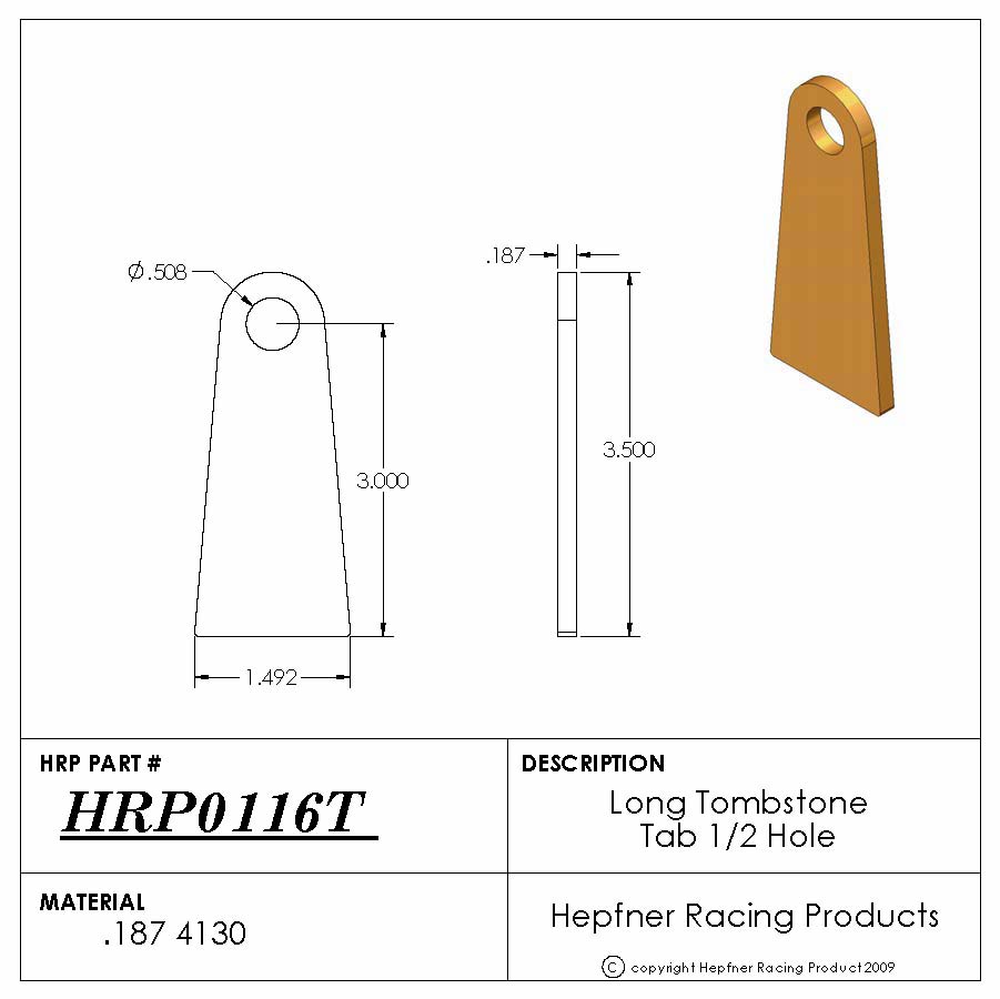 1/2" (.508) Dia Hole3 1/2" (3.500) Tall