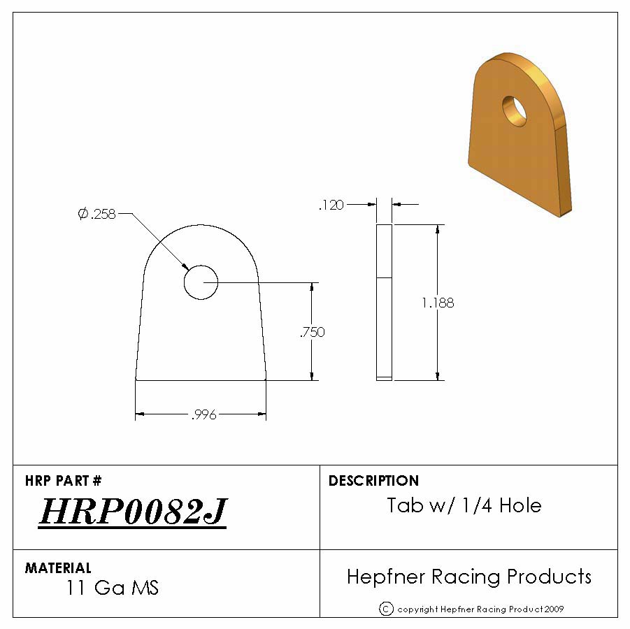 Tab, MS, 0.120" Thick x 0.258" Hole x 0.996" Flat Bottom