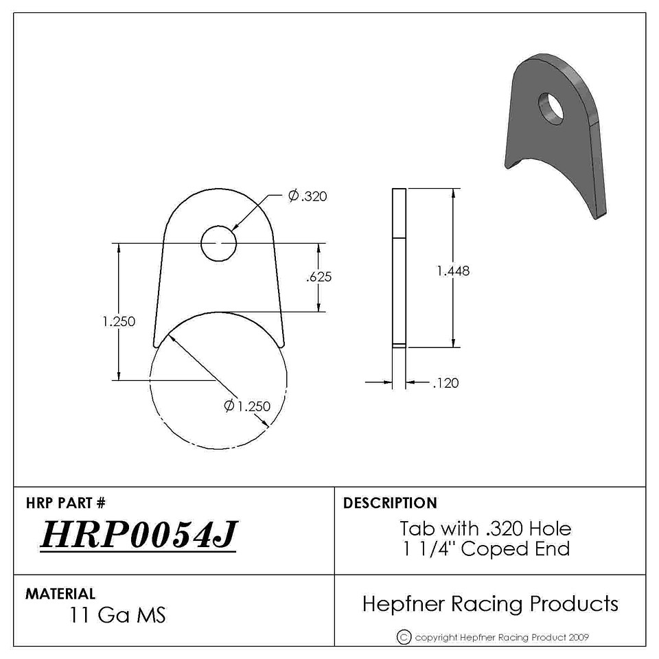 Tab, MS, 0.120" Thick x 0.320" Hole x 1.25 Dia Coped End