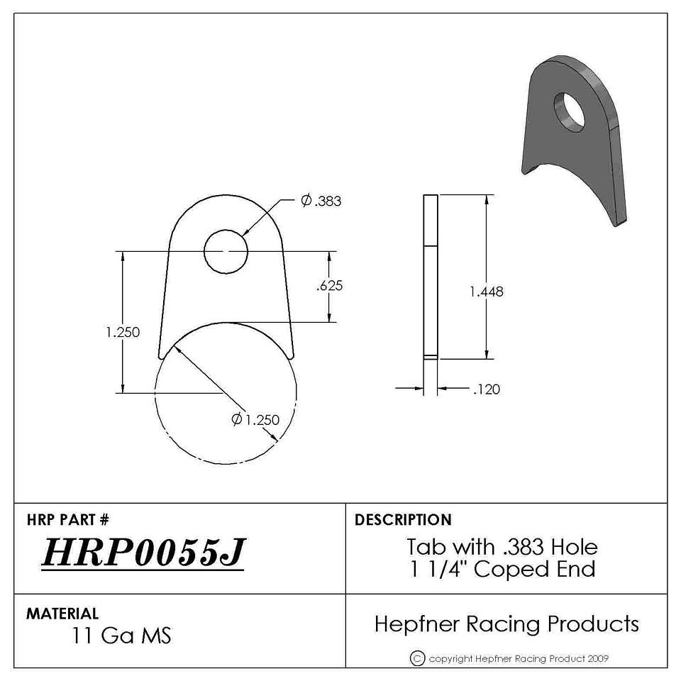 Tab, MS, 0.120" Thick x 0.375" Hole x 1.25 Dia Coped End